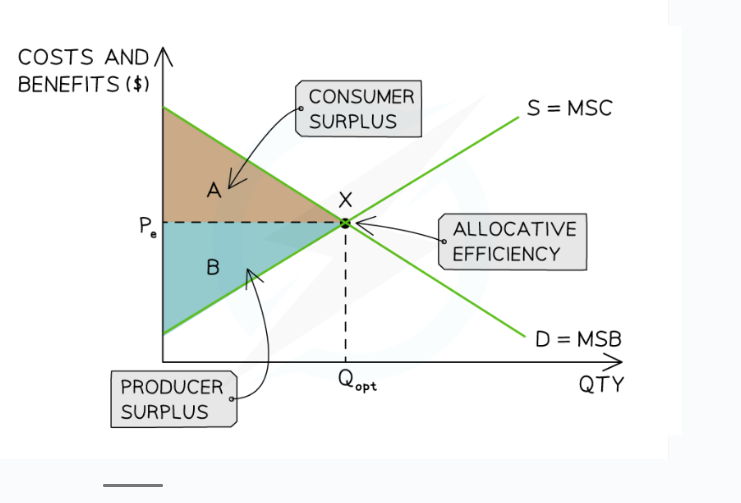 This is when Marginal Social Benefit[MSB]=Marginal Social Costs[MSC]