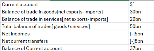 Current account is the balance of trade of goods and services, net primary incomes from abroad and net current transfers[secondary incomes].