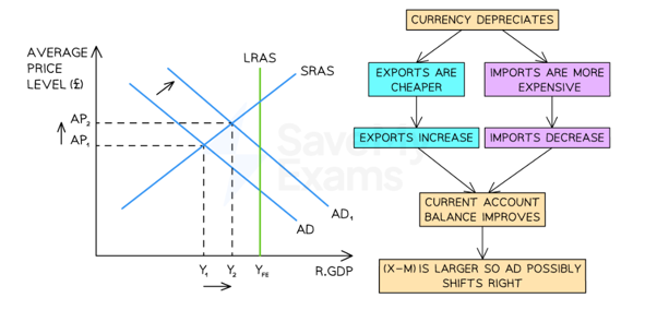 However, this benefit is limited by the marshall lerner condition; if the combined PEDs of exports and imports is more than 1/elastic only then would it actually be helpful.